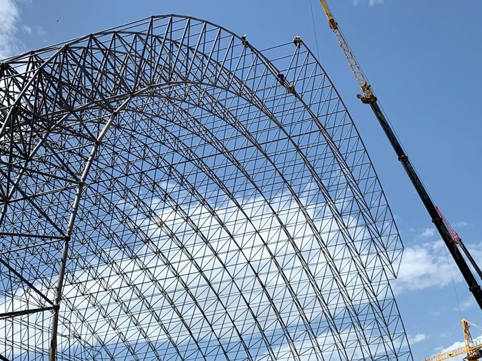 (2)网架加工前应对现场尺寸进行复测,确认无误后方可进行加工、安装;网架制作、运输、安装应遵守《空间网格结构技术规程》JGJ7-2010、《钢网架金山螺栓球节点》JG/T 10-2009、《钢网架金山螺栓球节点用高强度螺栓》 GB/T 16939-2016、《金山钢结构金山工程金山施工规范》 GB50755-2012、《金山钢结构金山工程金山施工质量验收标准》 GB50205-2020。